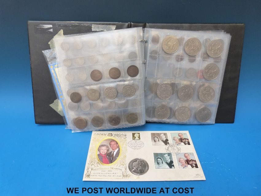 An amateur collection of coinage includes some UK sets etc, George Washington dollars, modern crown etc in Magpie folder together with overseas bank notes, UK, Scottish, Guernsey examples