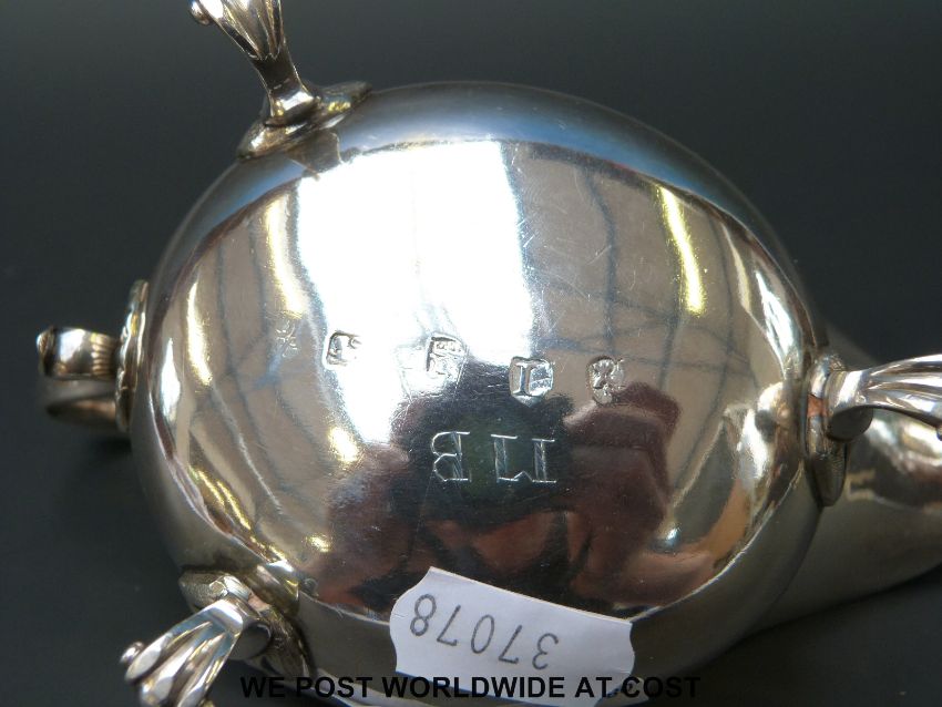 A George II provincial hallmarked silver sauce boat Newcastle 1750, maker's mark rubbed, length 14cm (131g)