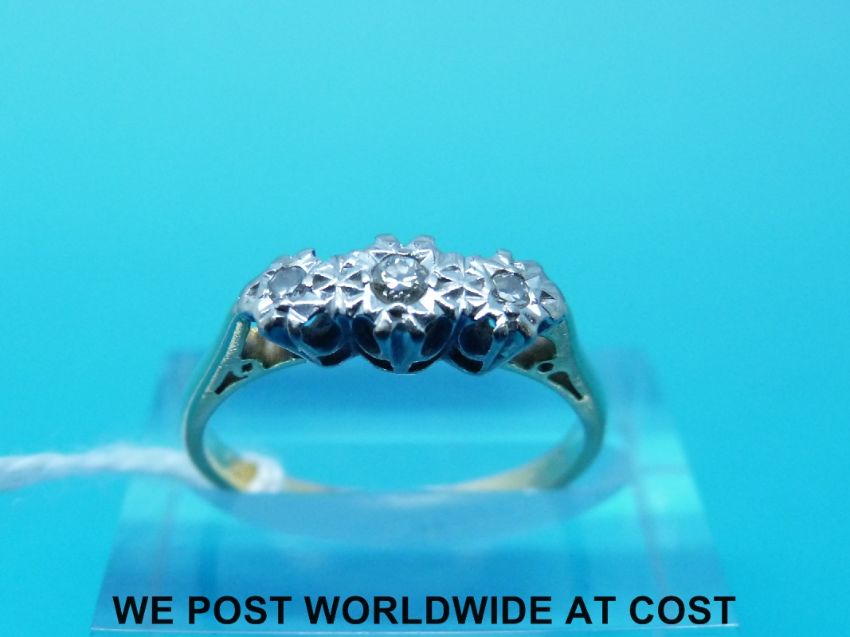 An 18ct gold ring set with diamonds in an illusion setting (size M)