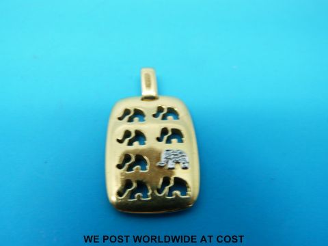An 18ct gold C'est Laudier pendant with cut out design of elephants, one set with diamonds (14g)