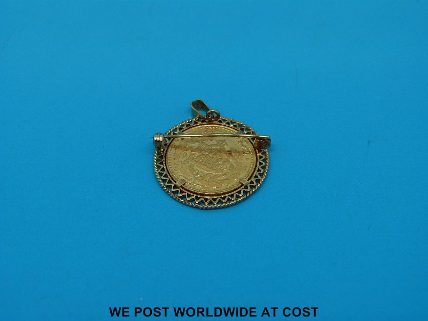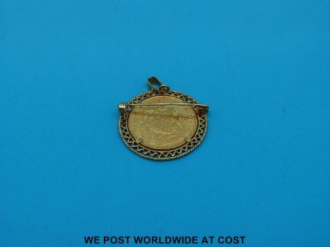 A 14ct gold brooch set with a Dutch coin to commemorate the birth of Prince Willem Alexander in 1967 marked 6.729 and 0.800 to the face of the coin (10g)