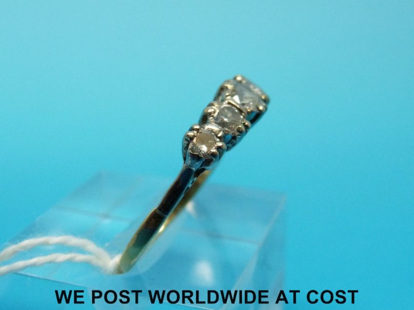 An 18ct gold ring set with five diamonds in a platinum setting (size Q)