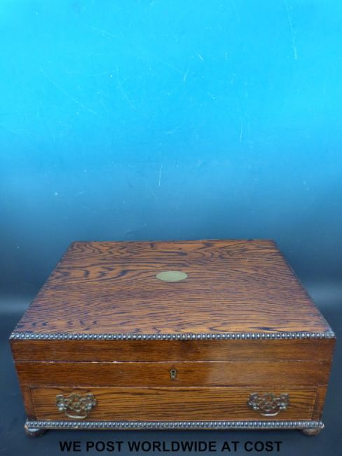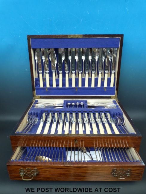 An oak cased twelve place canteen of cutlery, the knives marked Viners