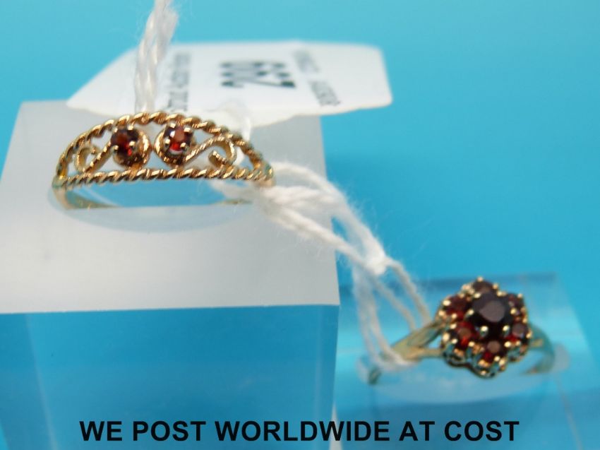 Two 9ct gold rings set with garnets