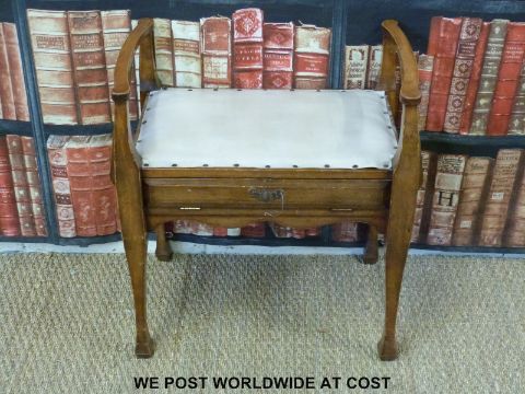 An Art Nouveau upholstered piano stool (H63 x W64 x D40cm)
