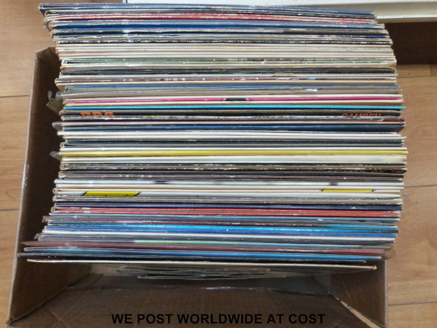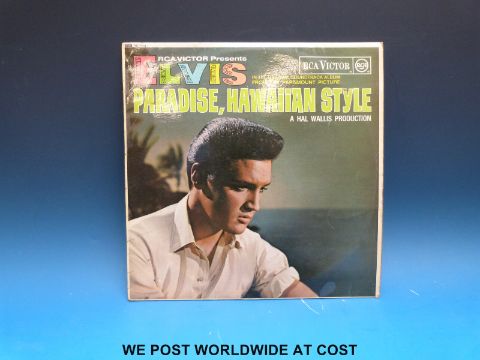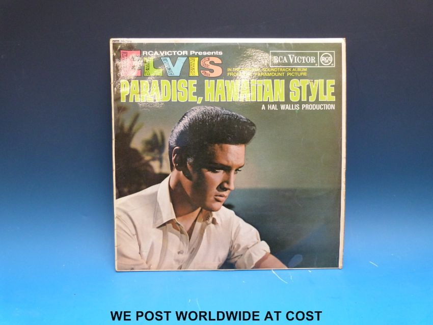 A collection of about 65x records including 45x LPs and 3x 7” singles by Elvis Presley and 7x LPs by The Beatles. The condition of the vinyl appears to be mostly very good to excellent.