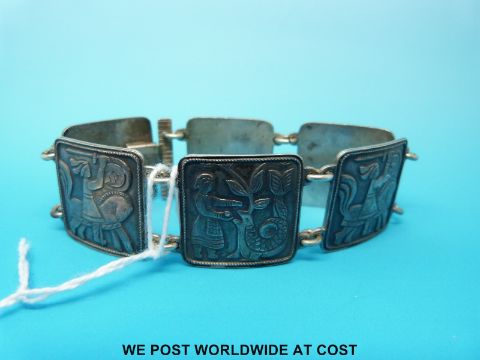 A David Andersen Norwegian silver bracelet with figural and animal scenes