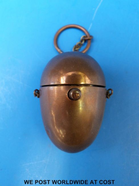 A copper and gilt sovereign case formed as an egg