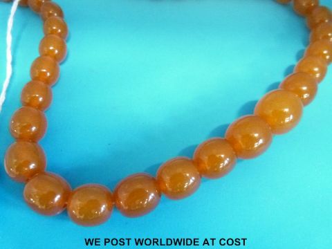 An amber necklace consisting of 45 graduated ovoid beads, the largest 17 x 15cm, 54cm long (40g)
