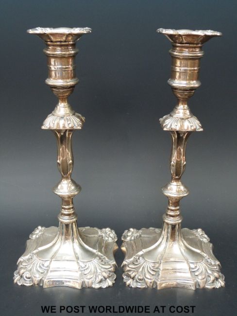 A pair of George V hallmarked candlesticks, Sheffield 1917, maker Hawkesworth, Eyre & Co Ltd with weighted bases (25cm tall)