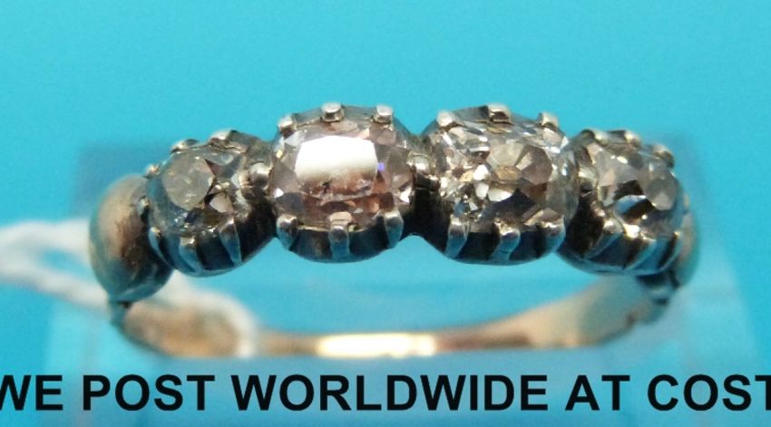 A late Georgian/ early Victorian ring set with four old cut diamonds (size P)