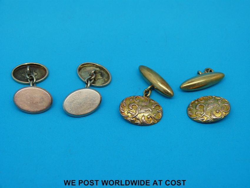 A pair of 9ct gold cufflinks and an 18ct gold pair
