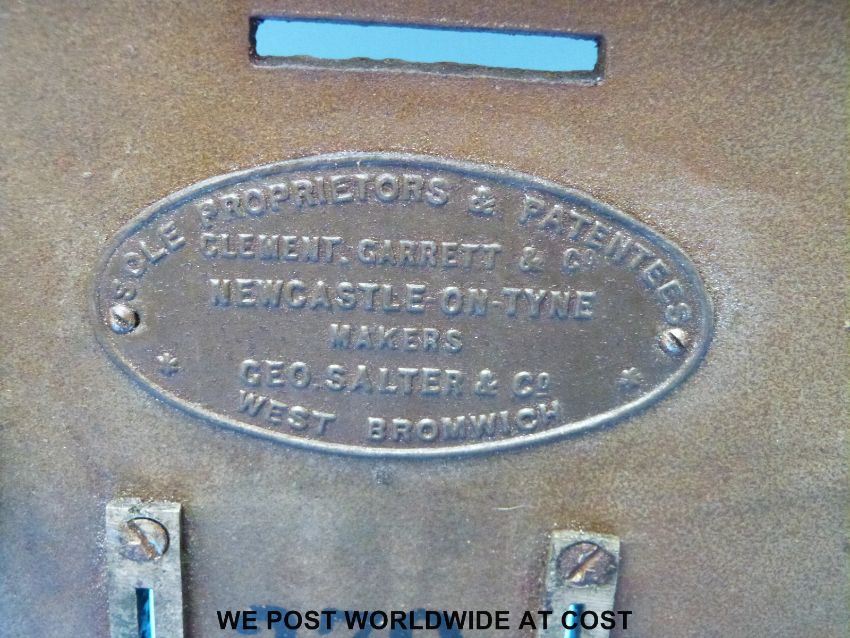 A Victorian Garretts 'Bijon gold charger' of cast iron construction and Art Nouveau design with key. The interior with change drawers which release change when a full or half sovereign is fed into the machine. The vendor assures us it still works however this is unsubstantiated (H28 x W23 x D15cm)
