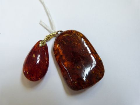 Two amber pendants, largest 4.2cm (13g)