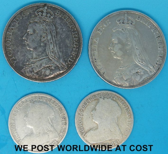 Two Victorian crowns (1889 and 1891) together with a 1935 rocking horse crown, three further Victorian coins and a further coin