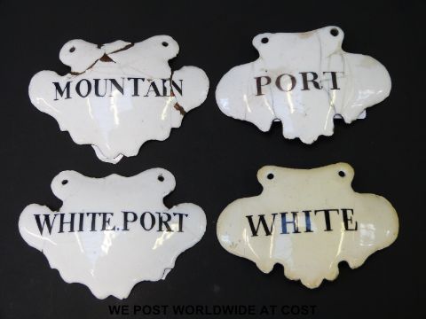 Four late 18th / 19thC enamel wine labels including White Port, Mountain, Port and White