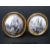 Two 18thC Bilston enamel cloak pins or chimney piece knobs, both decorated en grisaille, one with a reclining maiden the other with a castle