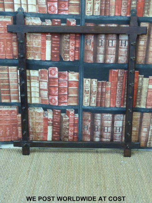 A late 19thC/early 20thC oak framed stick rack (H103 x W91cm)