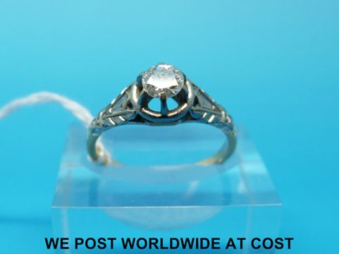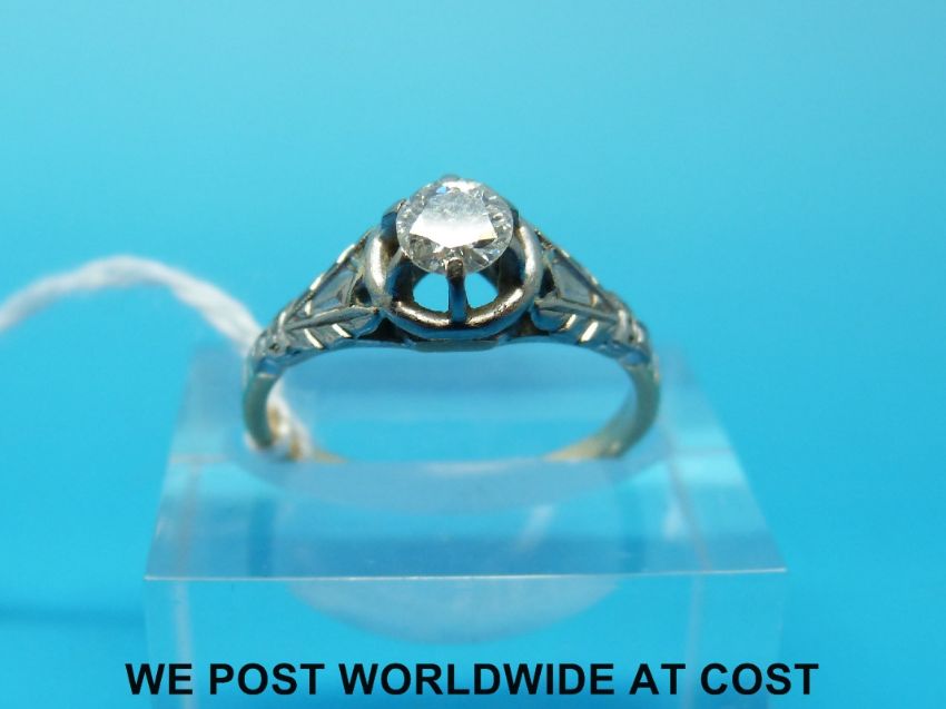 A yellow metal ring marked 18ct set with a round brilliant cut diamond of approximately 0.29ct in a platinum setting (size K)