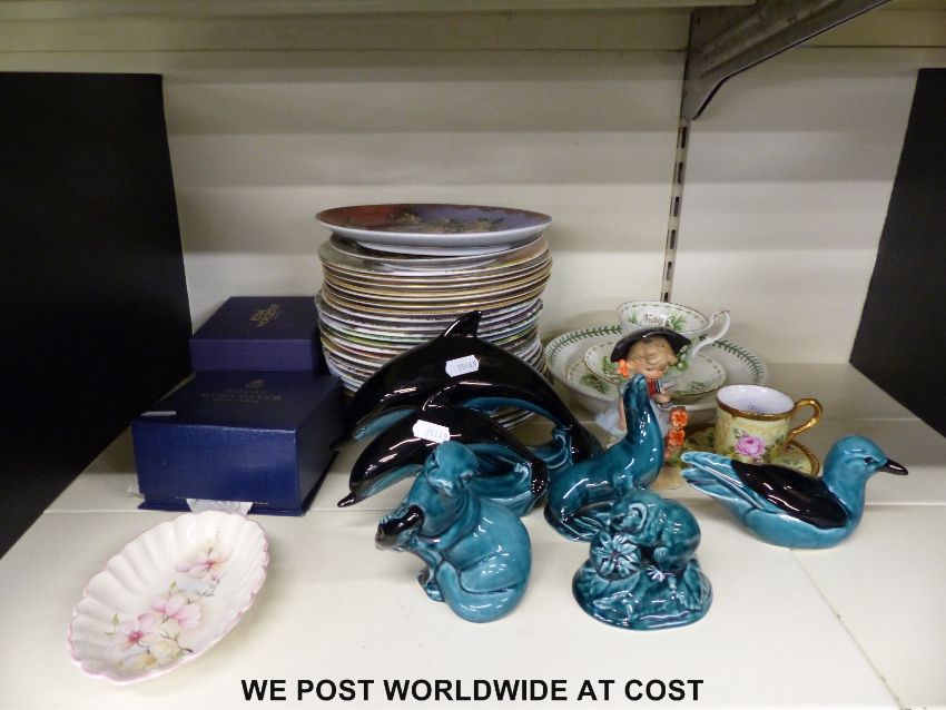 A collection of ceramics including Royal Worcester cup and saucer, Royal Albert Lily of the Valley trio, Poole pottery, Portmeirion, Royal Doulton collectors plates etc