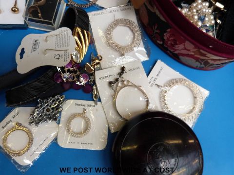 A large collection of costume jewellery to include silver coin mounts, three pairs of 9ct gold earrings etc