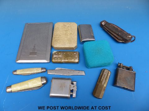 A quantity of collectables and lighters including Dunhill, Deutz engines etc, various folding knives etc