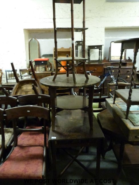 An 18thC mahogany Pembroke table, a Chinese bamboo cake stand and a circular coffee table