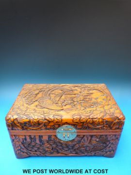 A 19thC mother of pearl inlaid mahogany work box and a carved box