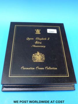 A Queen Elizabeth II 40th Anniversary Coronation Collection comprising 18 crown sized silver proof coins in case with certificate no 0134