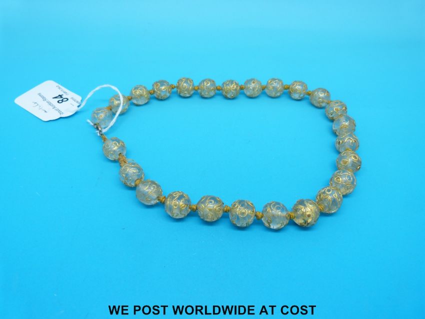 A late 19th/20th century glass bead necklace with gilt decoration.