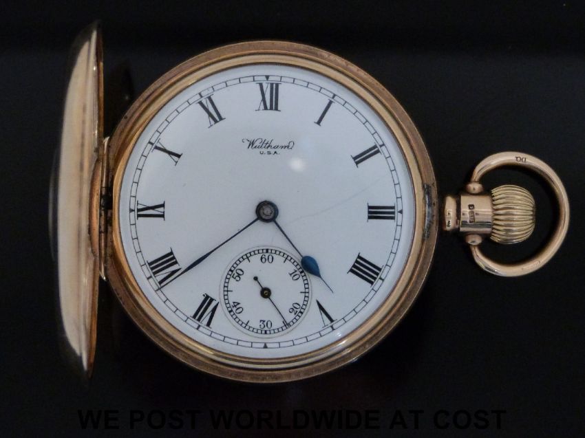 A Waltham 9ct gold gentleman's half hunter pocket watch with keyless wind movement