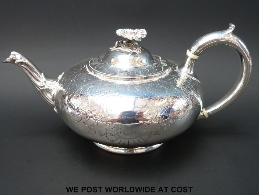 A Victorian hallmarked silver teapot of squat design, London 1855 maker Daniel & Charles Houle length 27cm (653g)