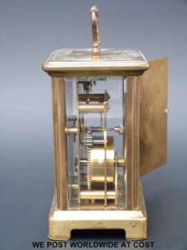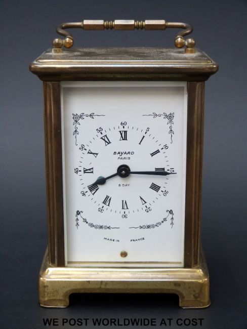 A Bayard carriage clock with keyless movement, floral and foliate decoration to dial