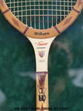 A cased Wilson 1950's autographed Tony Trebert tennis raquet