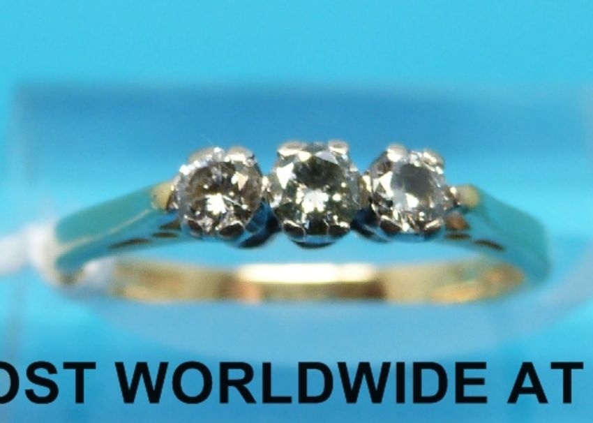 An 18ct gold ring set with three round brilliant cut diamonds (size K)