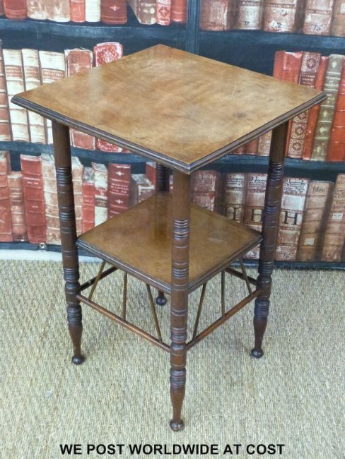 In the manner of Godwin a 19th/20thC mahogany side table with undershelf (H67 x W42 x D42cm)