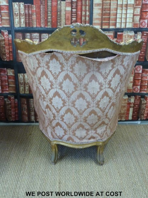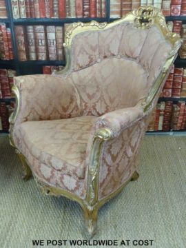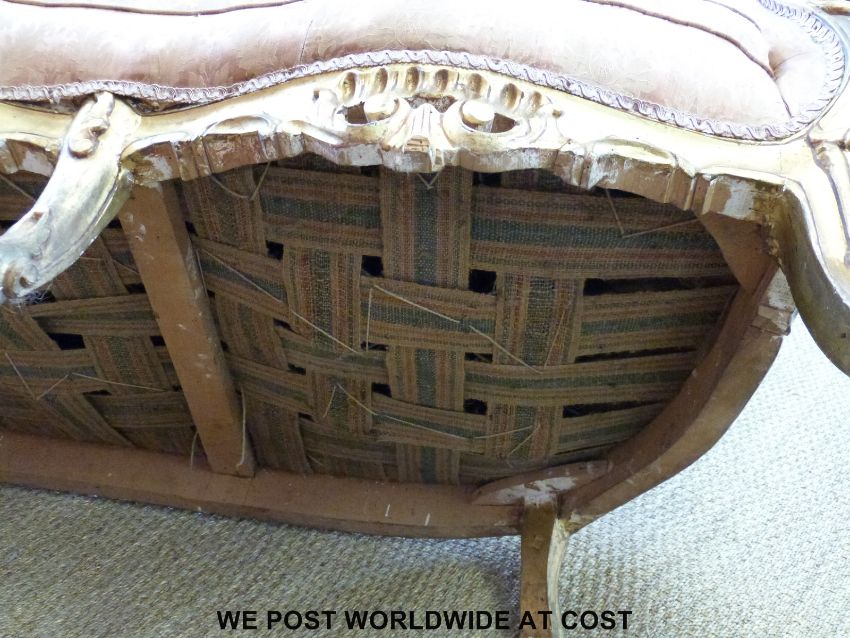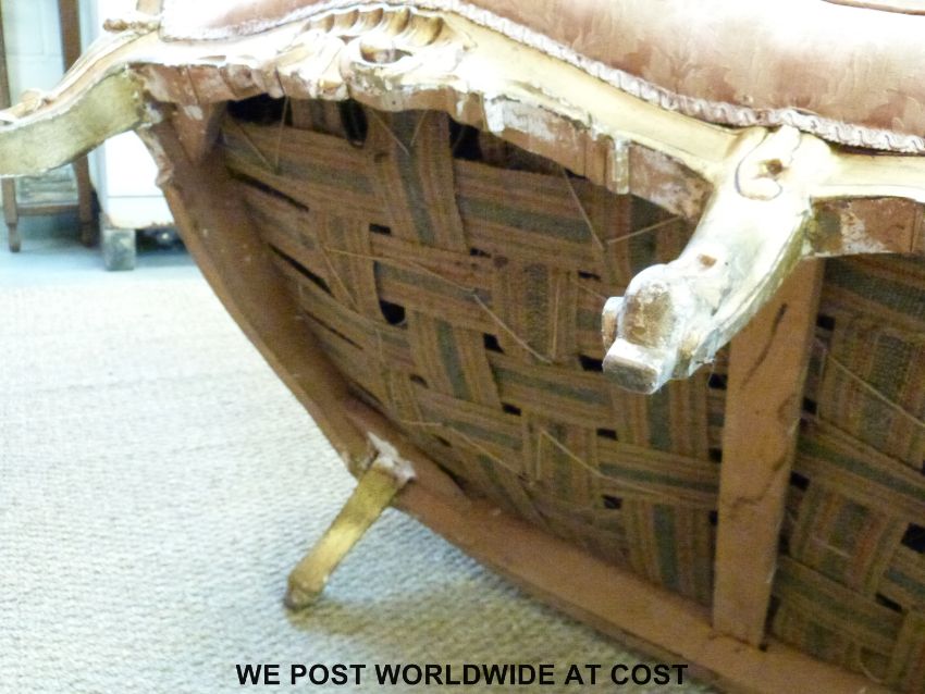 A 19thC gilt wood salon suite comprising an eight legged sofa and two chairs