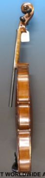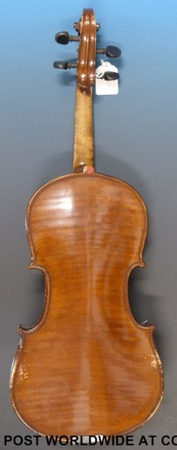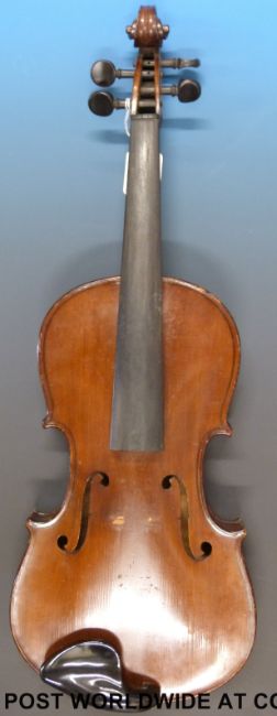 A vintage violin with Antonius Stradivarius Cremonensis label, 35.5cm back with wax seal, with case and bow