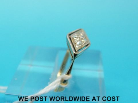 An 18ct gold ring set with diamonds in a platinum setting (size L)