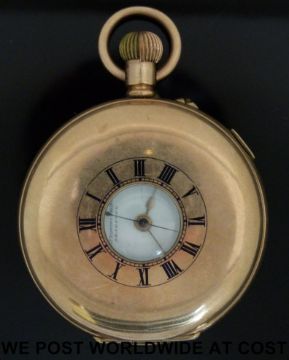 A Fattorini & Sons gold plated gentleman's keyless half hunter pocket watch with doctor's type chronometer movement