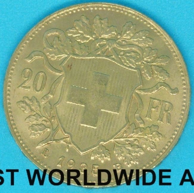 A cased 1935 'B' Swiss 20 Franc gold coin
