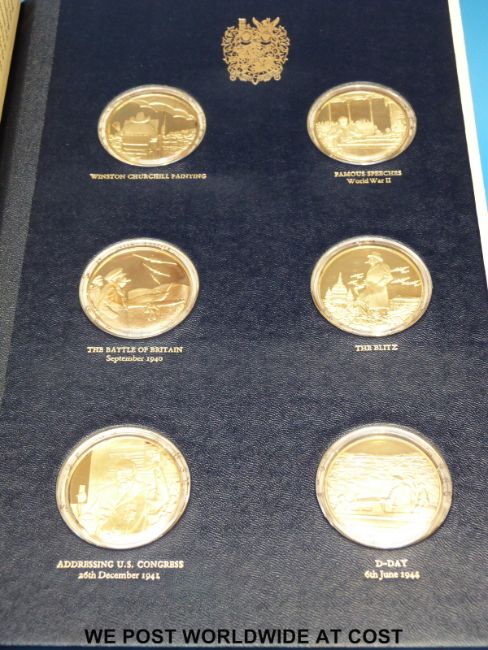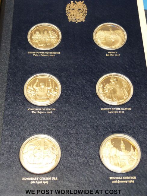 A set of 24 limited edition silver commemorative Churchill Centenary medals, approximately 612g in total