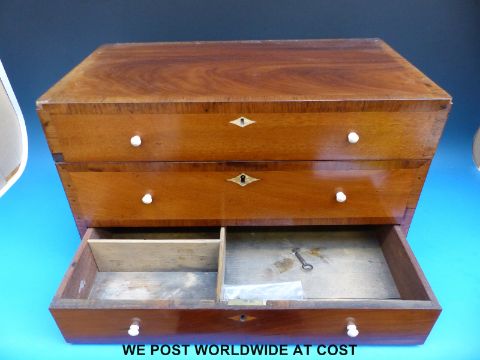 A Georgian mahogany and cross-banded campaign or travelling apothecary chest with hinged top section formed as two dummy drawers, divided to suit bottles or similar. A single drawer is fitted to the base (width 51cm, depth 29cm, height 30cm)