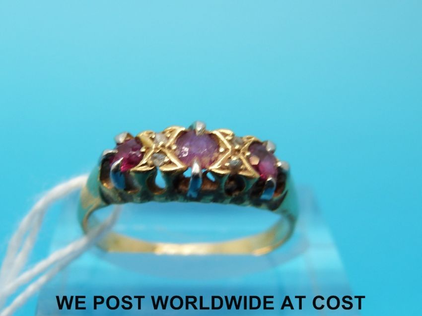 An 18ct gold ring set with diamonds and rubies (size N)