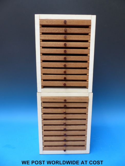 Two sets of coin collectors' chests, each with ten drawers