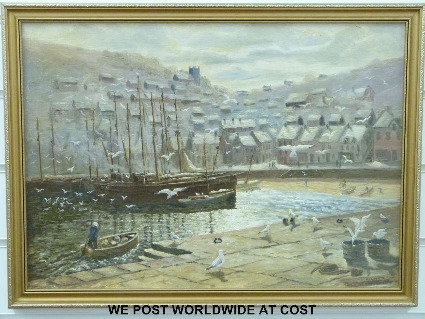 Kilner oil on board Brixham, Devon 1954 (35cm x 49cm)