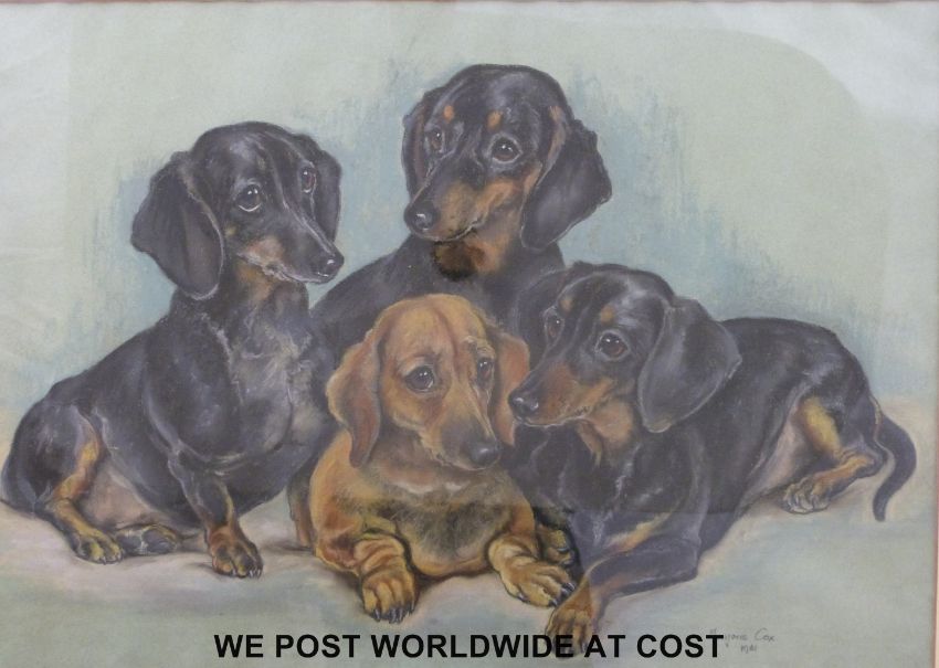 Marjorie Cox pastel of four dachshunds, signed and dated 1961 lower right, (41cm x 60cm)