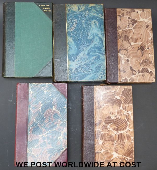 A collection of French editions, either half or quarter leather, mottled board, to include Georges Ohnet, La Grande Marniere (1944), Emile Verhaeren, La Multiple Splendeur (1913) and Fables de la Fontaine