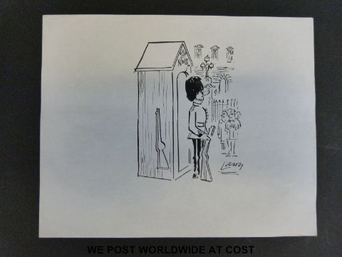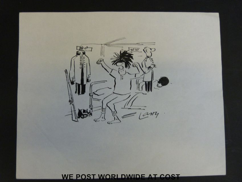 Seven Larry (Terence Parkes) original cartoons all with a military theme including London interest (each 20x25cm)