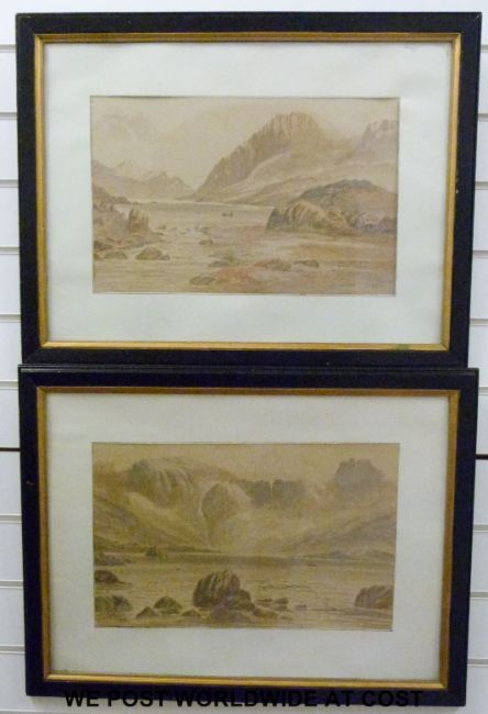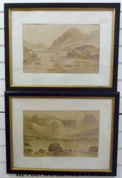 JJ Parry pair of watercolours of mountain loch scenes (27 x 43cm)